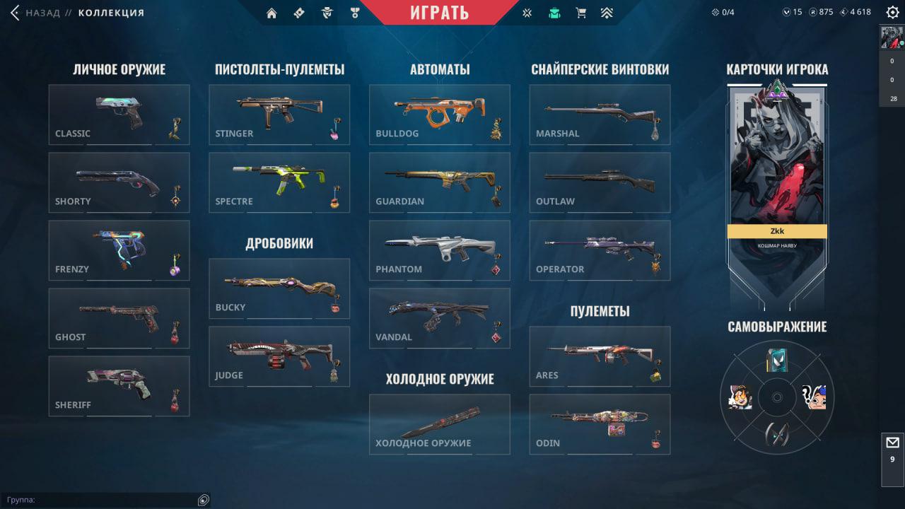 🥈Battle Pass: 4-9 Акт;✨Агенты: 23;🔫Скины на оружие: 80+