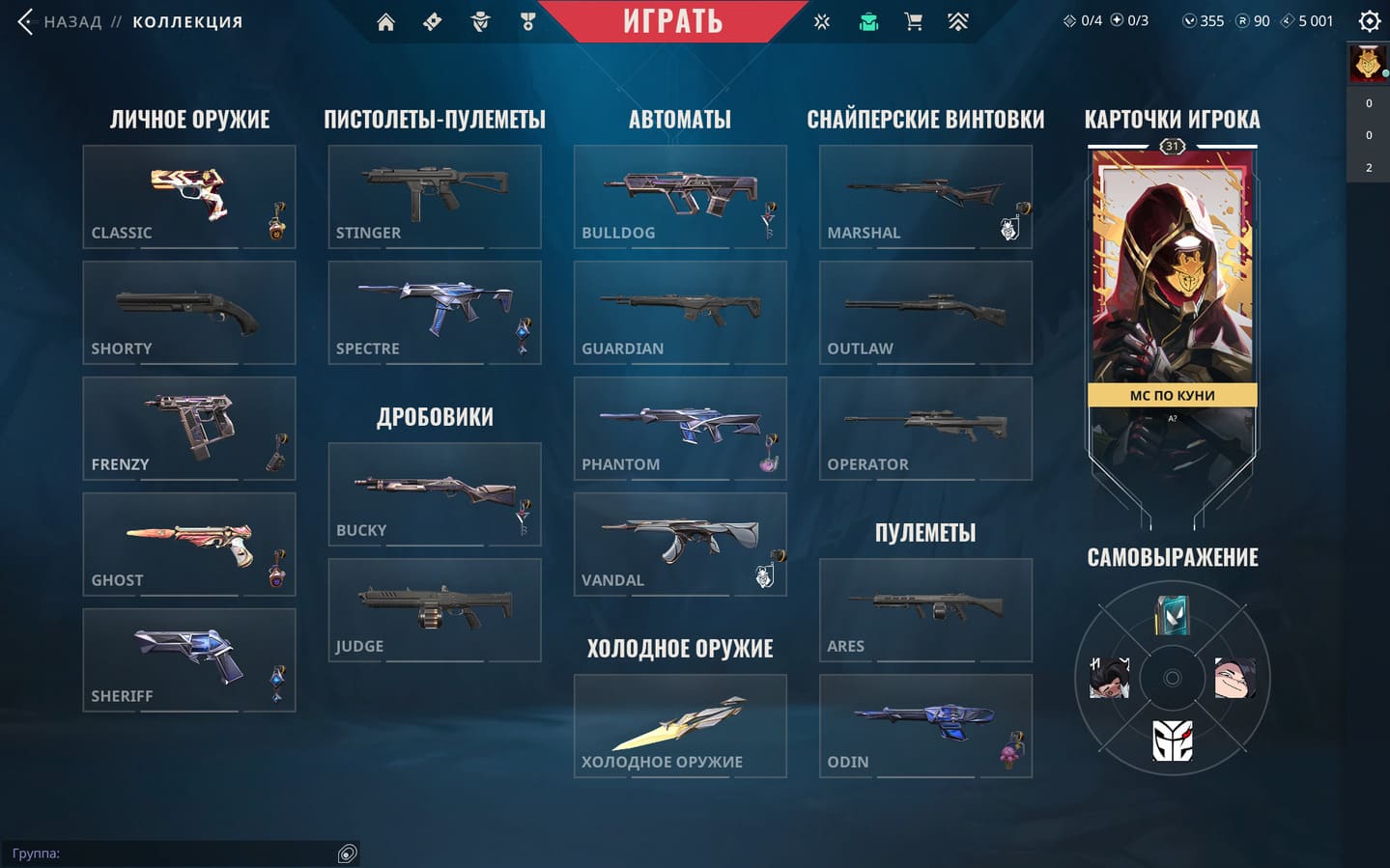 🥈Battle Pass: 5 Акт;✨Агенты: 20;💲VP: 6590;💰RP: 75;